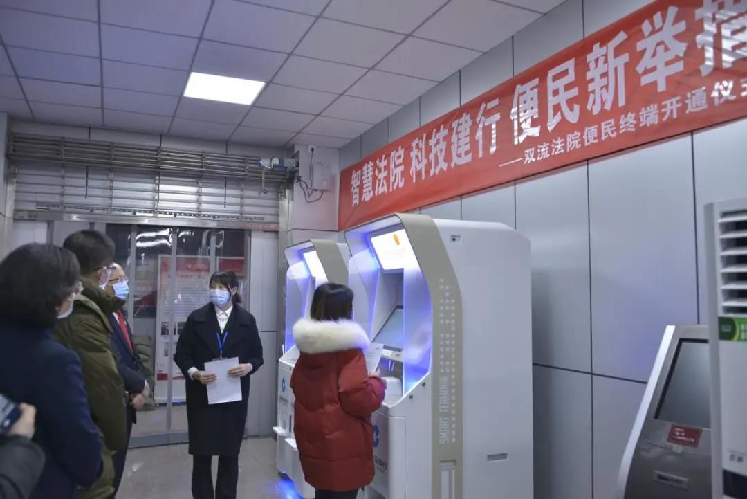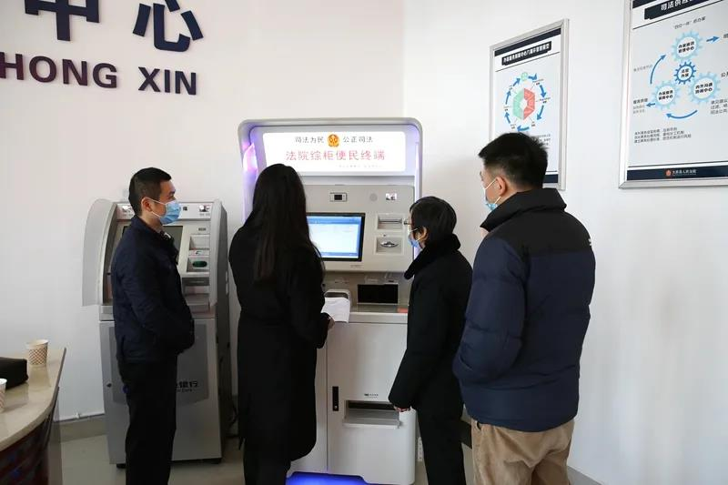 为深入贯彻落实最高人民法院关于“两个一站式”建设工作要求,加大司法便民利民力度,推进智慧法院建设,夯实办案服务保障中心实体化运行,大邑法院与中国建设银行大邑支行共同引进的“法院综柜便民终端” 于2020年12月21日正式上线。