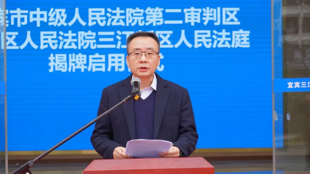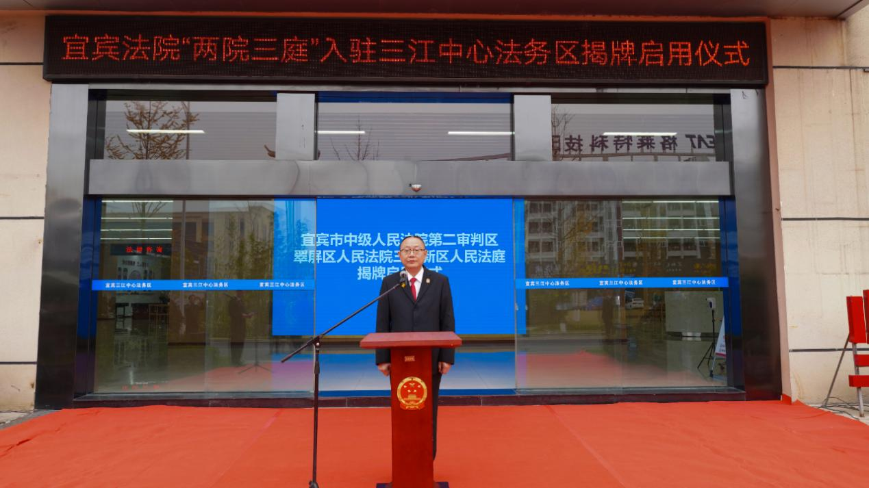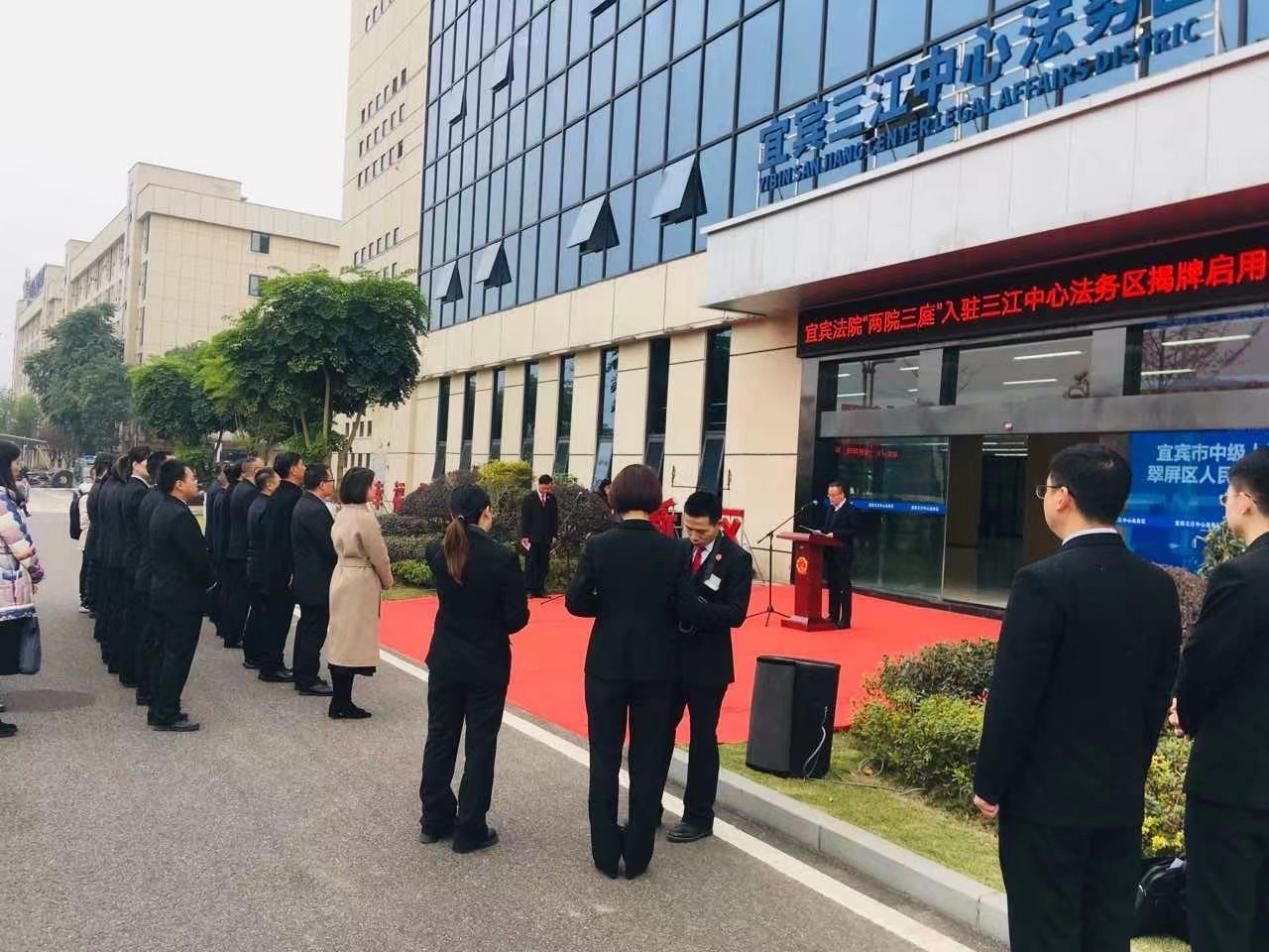 12月2日,宜宾法院在宜宾三江中心法务区举行宜宾市中级人民法院第二审判区、翠屏区人民法院三江新区人民法庭揭牌启用仪式。