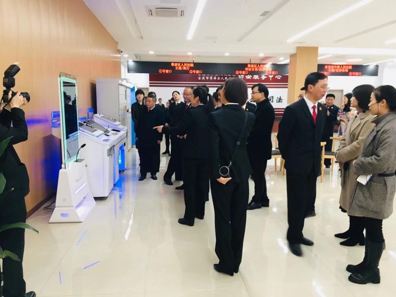 揭牌仪式结束后,市、区领导一行参观了市中院、翠屏区法院诉讼服务分中心、商务活动室、办公办案区、诉源治理区、法庭文化长廊等地,详细了解诉讼服务、数助决策、环境资源审判、知识产权保护、企业破产重整、法治营商环境营造、矛盾纠纷多元化解等工作情况。