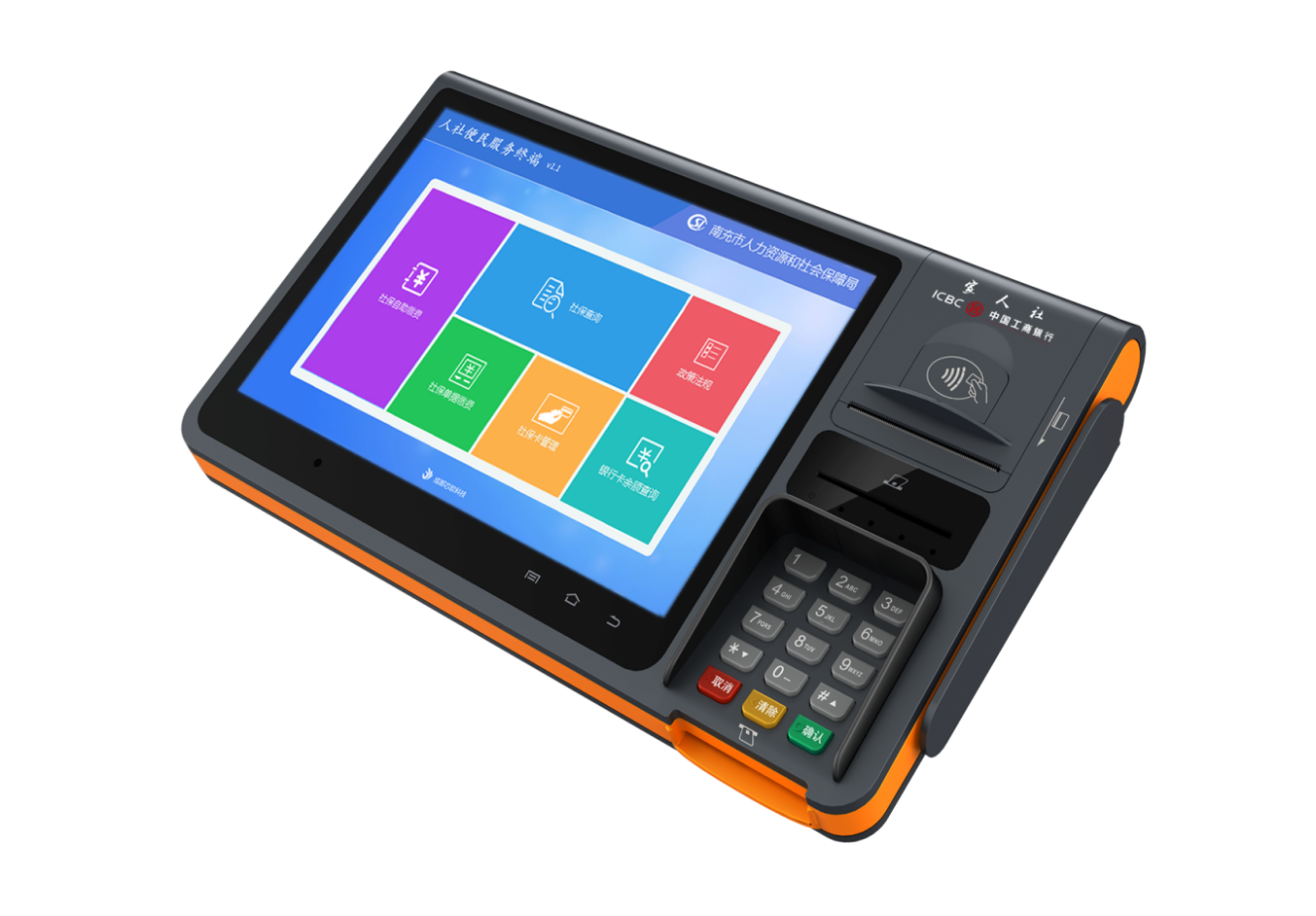 高清触摸屏、高拍仪、金属密码键盘、A4打印机、发票打印机、身份证识别、二维码扫描仪、高清摄像头、凭条打印机、支持多种渠道支付适用行业